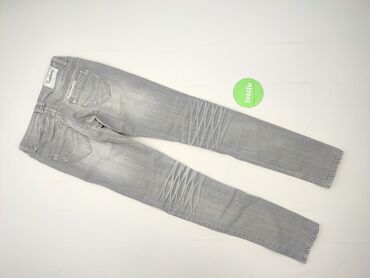 Jeansy damskie RE-DRESS, rozmiar S. - Krój: slim/tapered z wysokim stanem, pięć kieszeni, szlufki na pasek, zapięcie na guzik i zamek. - Kolor: jasny denim z przetarciami i licznymi, efektownymi d...