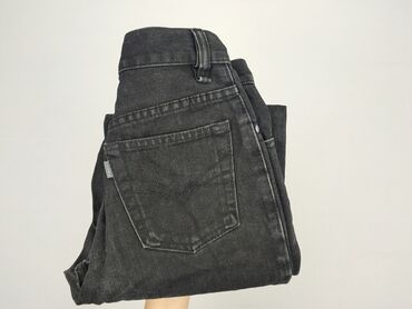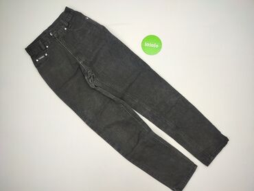 Czarne jeansy damskie z denimu, lekko sprane (wykończenie washed). - Fason: zwężane nogawki (tapered), wysoki stan. - Zapięcie: guzik metalowy i zamek. - 5 kieszeni: dwie z przodu + mała kieszon...