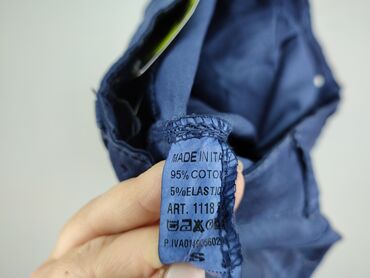 - Fason: dopasowany, zwężane nogawki (skinny/slim)