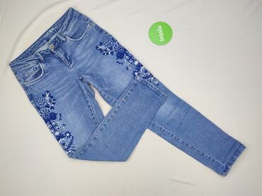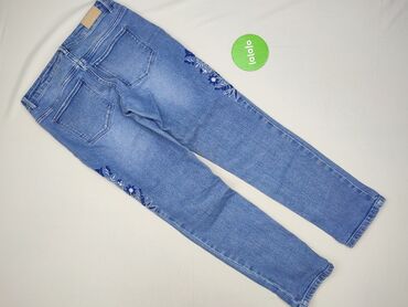 Jeansy damskie Mohito Denim Collection - Model: klasyczne jeansy z haftem kwiatowym (różowe i niebieskie motywy) na przodzie nogawek oraz na tylnej kieszeni - Fason: zwężane nogawki, średni stan; ...