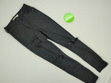 Jeansy damskie TOPSHOP – niebieski denim, model z przetarciami - Krój: dopasowane rurki/skinny - Stan: średni - Kolor: jasny niebieski - Efekt: liczne stylowe dziury i przetarcia na przodzie, suro...Stan: