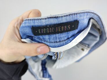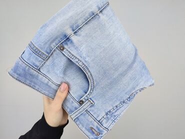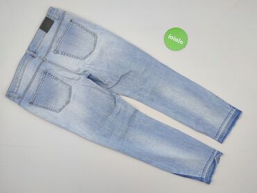 Jasnoniebieskie spodnie jeansowe damskie 3/4 - Krój: proste nogawki o długości 3/4 (culotte/capri) - Kolor: jasny denim z delikatnymi przetarciami optycznymi - Zapięcie: suwak + guzik z przodu...Stan: