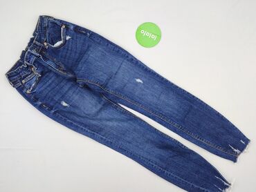 Damskie jeansy M. SARA – rozmiar XS - Fason: zwężane nogawki, lekko luźniejsza góra (krój typu mom/straight). - Kolor: jasny niebieski denim z delikatnymi przetarciami i subtelnymi dziurkami. ...Stan: