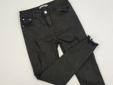 - Detale: subtelne przetarcia na nogawkach, postrzępione wykończenie dołów