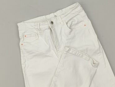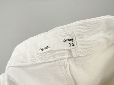Białe jeansy damskie Sinsay – Mid Waist Skinny - Krój: skinny, dopasowane nogawki - Stan w talii: średni (mid waist) - Rozmiar: 36 (wg metki) - Kolor: biały - Zapięcie: guzik i zamek - Kieszenie: ...