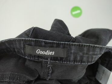 Spodnie damskie GOODIES JEANS - Kolor: czarny, delikatnie połyskujący - Fason: rurki/skinny, pięć kieszeni (3 z przodu, 2 z tyłu) - Zapięcie: guzik i zamek - Rozmiar z metki: L / 40 - Skład materi...