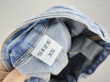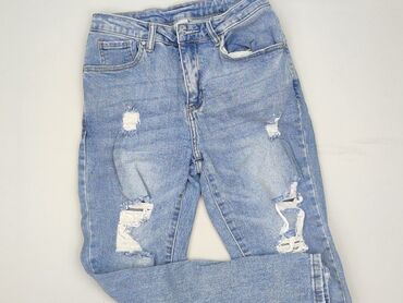 Jeansy damskie skinny, rozmiar XS. - Kolor: jasny niebieski, efekt sprania i przecierek - Krój: dopasowany (rurki), standardowy stan - Zapięcie: suwak + guzik, szlufki na pasek - Kieszenie: 5 kies...