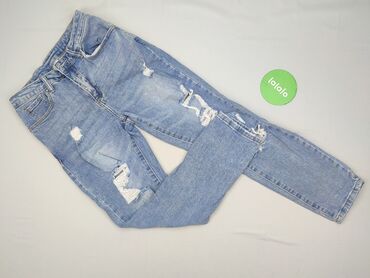 Jeansy damskie z przetarciami i dziurami - Krój: proste nogawki, wysoki stan - Kolor: klasyczny jasny/dżinsowy niebieski - Materiał: grubszy denim (bawełna z niewielką domieszką elastyczną – tkani...