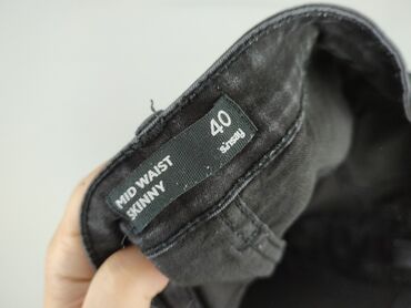 Sinsay – damskie jeansy skinny - Fason: skinny, dopasowane nogawki - Stan/rodzaj pasa: mid waist (średni stan) – informacja z metki - Rozmiar z metki: 38 - Kolor: ciemnoszary/graphite z lekkim prz...