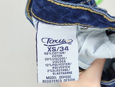 Jeansy damskie Toxik3 – model XS/34 - Fason: rurki/skinny, klasyczne 5 kieszeni - Kolor: średni granat z delikatnymi przetarciami i cieniowaniem - Stan zapięcia: guzik + zamek - Szlufki na pasek -...Stan: