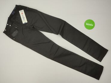 - Detale: klasyczny pięciokieszeniowy układ, szlufki na pasek, suwak i guzik z przodu, nity przy kieszeniach