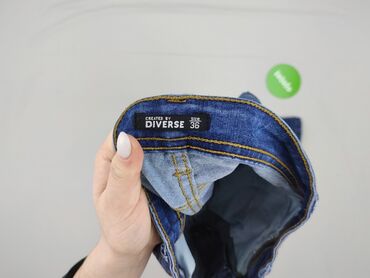 Damskie jeansy Diverse - Fason: rurki/skinny, średni stan - Kolor: klasyczny niebieski denim z delikatnymi przetarciami i cieniowaniem - Rozmiar z metki: 38 - Zapięcie: suwak + metalowy guzik - Ki...Stan: