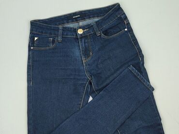 Damskie jeansy Slim Fit - Fason: slim, nogawka zwężana - Stan: średni (mid rise) - Kolor: ciemny granat z delikatnymi przetarciami i cieniowaniem - Klasyczne 5 kieszeni, z przodu mała kieszonka ze...