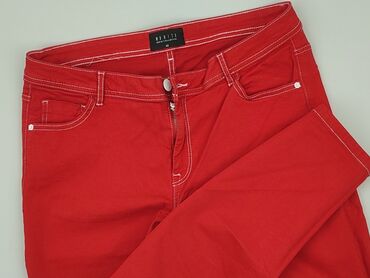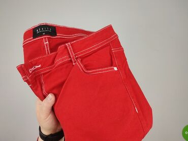 Czerwone spodnie damskie MOHITO Basic - Rozmiar: 36 (z metki) - Krój: dopasowany, rurki - Stan zapięcia: guzik + zamek błyskawiczny - Pas ze szlufkami na pasek - Kieszenie: 5-pocket (dwie z przodu...