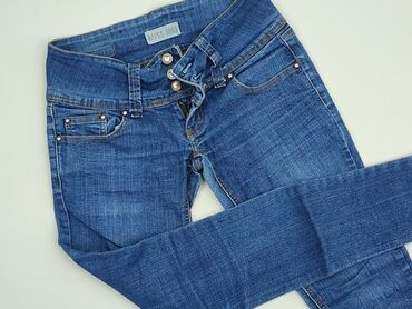 Jeansy damskie Miss Anna – model skinny - Rozmiar: 38 (metka) - Fason: rurki/skinny, klasyczna 5‑kieszeniowa konstrukcja - Stan zapięcia: guzik + zamek - Kolor: granatowy denim z przetarciami i de...