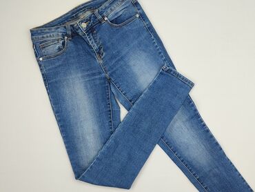 Damskie jeansy Sinsay - Krój: skinny - Stan: mid waist (średni stan) - Rozmiar z metki: 38 - Kolor: jasny denim z delikatnymi przetarciami optycznymi - Zapięcie: suwak i guzik - Kieszenie: 5 (dwie...