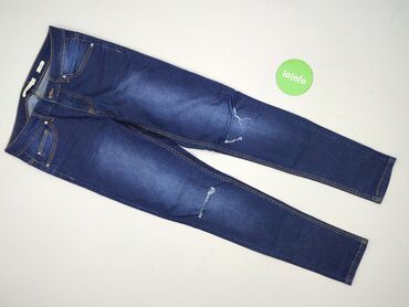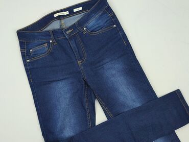 Damskie jeansy Sinsay - Krój: skinny - Stan pasa: mid waist (średni stan) - Rozmiar z metki: 38 - Kolor: ciemny granat - Zapięcie: guzik i zamek - Kieszenie: 5 (dwie z przodu, mała kieszonka, dwie...