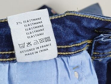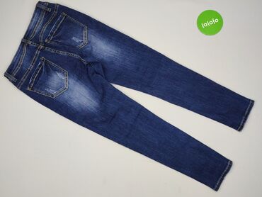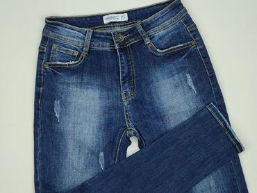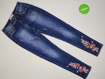 Jeansy damskie z aplikacjami – rozmiar M - Fason: dopasowane rurki, średni stan - Kolor: klasyczny niebieski denim z delikatnymi przetarciami i efektem cieniowania - Ozdoby: naszywane aplikacje w ...