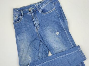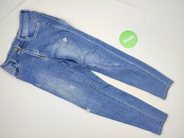 Damskie jeansy z dziurami – rozmiar L - Krój: slim/skinny z klasycznym stanem - Materiał: 100% bawełna (metka w środku) - Kolor: klasyczny niebieski denim, delikatne przetarcia - Detale: modne, mo...