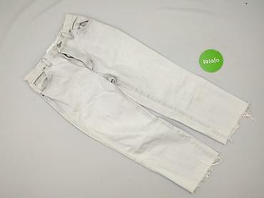 - Fason: prosta nogawka, wysoki stan, 5 kieszeni, szlufki na pasek