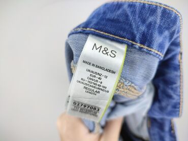 - Detale: szlufki na pasek, nitowane wykończenia kieszeni, skórzana naszywka z tyłu pasa