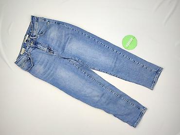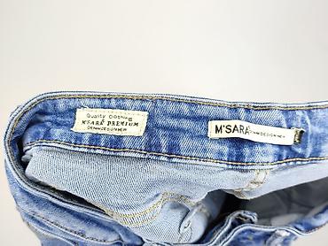 Jeansy damskie M’SARA, rozmiar M - Fason: slim/skinny z wysokim stanem - Kolor: jasny denim, delikatne cieniowania - Efekty: przetarcia i dziury na nogawkach, surowo wykończone doły - Zapięcie: gu...
