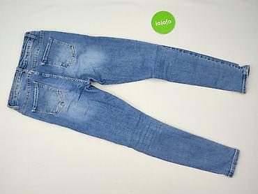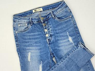- Detale: lekkie distressed na udach i przy dołach nogawek, klasyczne przeszycia w kolorze beżowym