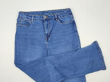 Damskie jeansy w kolorze jasnego, spranego błękitu. Klasyczny krój z pięcioma kieszeniami, szlufkami na pasek, zapięcie na zamek i guzik. Prosty, lekko zwężany nogawką fason. Rozmiar: XL (z metki)...