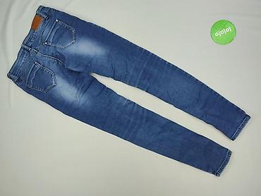 - Kolor: klasyczny niebieski denim z jaśniejszymi przetarciami na udach i kolanach