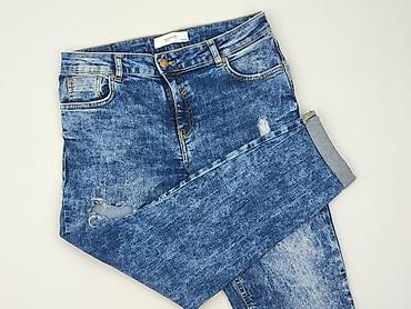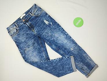 - Model: klasyczne 5‑kieszeniowe jeansy z przetarciami i delikatnymi dziurami (efekt distressed)