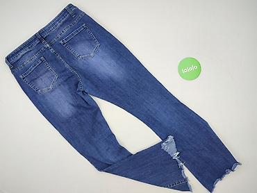 Damskie jeansy w kolorze jasnego, spranego błękitu. Klasyczny krój z pięcioma kieszeniami, szlufkami na pasek, zapięcie na zamek i guzik. Prosty, lekko zwężany nogawką fason. Rozmiar: XL (z metki)...