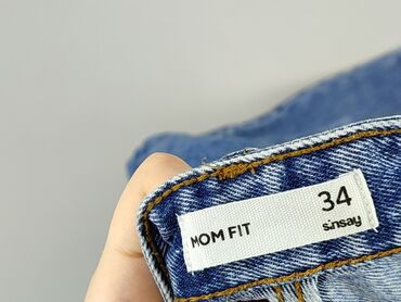 Jeansy damskie Sinsay – Mom Fit - Fason: Mom Fit, średni/wysoki stan, zwężane nogawki - Rozmiar z metki: 34 - Kolor: klasyczny niebieski denim - Materiał: bawełniany denim (bez dodatku elastycznyc...