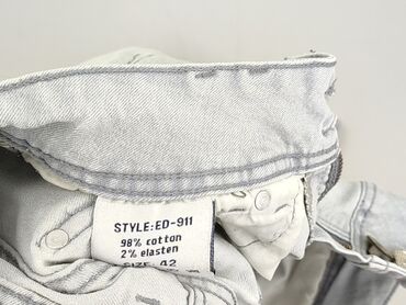 Damskie spodnie jeansowe MONIKA, rozmiar 42 - Fason: klasyczny 5‑kieszeniowy, prosta nogawka - Kolor: beżowy/piaskowy melanż - Zapięcie: suwak i guzik - Tył: dwie kieszenie z dekoracyjnym haftem -...