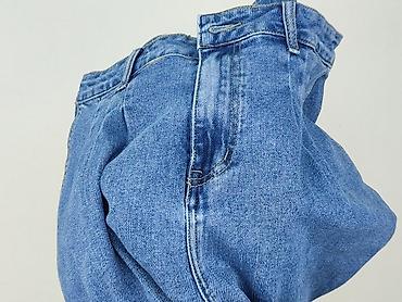 - Krój: luźne „mom jeans”/tapered, z zakładkami przy pasie i zwężanymi nogawkami