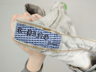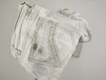 Damskie jeansy „Dress Like You Are Already Famous” – Designed in Italy - Kolor: jasnoszary/srebrzysty denim - Rozmiar z metki: XS - Fason: zwężane nogawki, klasyczny stan - Zapięcie: guzik i zamek...