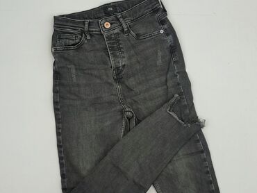 Jeansy damskie River Island - Model: skinny/zwężane nogawki - Kolor: jasny denim z delikatnymi przetarciami/rozjaśnieniami z przodu i na udach - Rozmiar z metki: 12 (River Island) - Krój: stan śre...