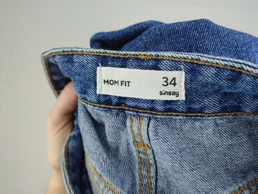 Jeansy damskie Sinsay – Mom Fit - Krój: Mom Fit – wysoki stan, lekko zwężane nogawki - Rozmiar z metki: 34 - Kolor/wykończenie: klasyczny niebieski denim, delikatny efekt sprania - Zapięcie: suwak...Stan: