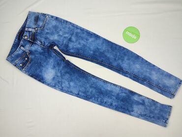 Damskie jeansy skinny z średnim stanem - Krój: skinny (rurki), mid waist - Rozmiar z metki: 36 - Kolor: jasny denim z efektem sprania/acid wash - Dodatki: modne przetarcia i dziury z przodu - Zapi...