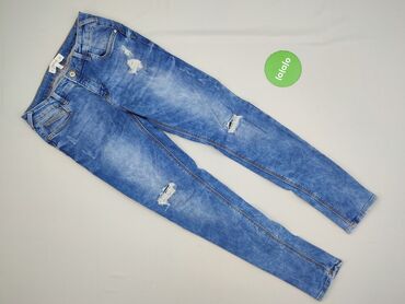 - Kolor: klasyczny niebieski denim z przetarciami i dziurami (efekt distressed)