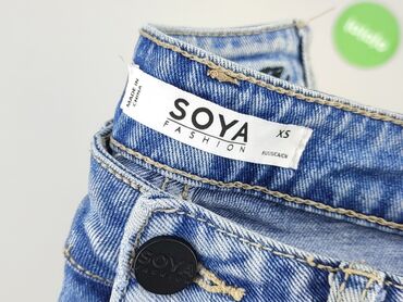 Spodnie jeansowe SOYA FASHION w jasnoniebieskim kolorze. Charakteryzują się dopasowanym krojem oraz ozdobnymi haftami w kształcie kwiatów, umieszczonymi na udach. Jeansy posiadają modne przetarcia i rozdarcia, w tym na kolanach, co nadaje im nowoczesny wygląd. Zapięcie na guzik i zamek błyskawiczny zapewnia komfort noszenia. Idealne do codziennych stylizacji.