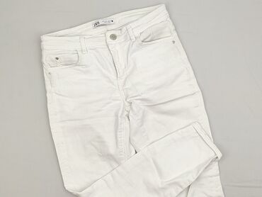 Białe spodnie damskie ZARA WOMAN - Rozmiar z metki: EUR 40 / USA 8 / MEX 30 - Krój: klasyczny, długie nogawki, stan średni - Materiał: bawełniany denim z dodatkiem elastanu (miękki, lekko elastycz...Stan: