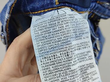 - Materiał: klasyczny denim (bawełna z domieszką dla wygody – metka ostrzega przed możliwym farbowaniem jasnych tkanin)