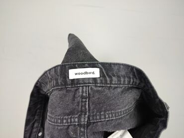 - Detale: miedziane nity, skórzana naszywka z logo na pasie, mała metka Woodbird przy kieszeni tylnej