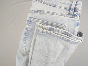 Jeansy damskie Sinsay - Linia: Denim - Rozmiar z metki: 44 - Krój: klasyczny, z prostą nogawką - Stan wykończenia: efekt przetarć i dziur (distressed) z przodu, subtelne przetarcia także z tyłu - ...