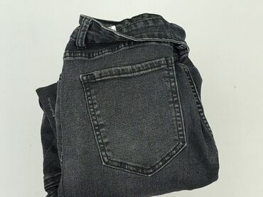 Damskie spodnie SHEIN – joggery denim - Model: joggery z denimu, zwężane nogawki - Kolor: grafitowy/ciemnoszary wypranie - Talia: wysoka, elastyczny ściągacz + białe sznurki do regulacji - Kieszen...