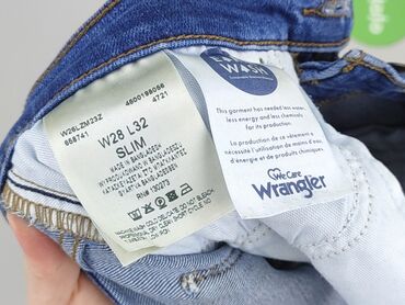 Męskie jeansy slim fit – niebieski denim - Krój: Low Slim Fit – zwężane nogawki, niższy stan - Rozmiar z metki: W29 L32 (talia 29, długość nogawki 32) - Klasyczny 5‑kieszeniowy fason: dwie kieszen...Jeansy Wrangler – model SLIM, W28 L32