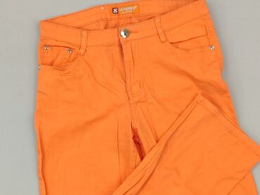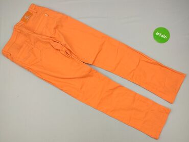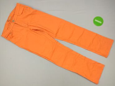 Damskie spodnie jeansowe w intensywnym pomarańczowym kolorze. - Rozmiar: L / 40 (metka) - Krój: klasyczny, długie nogawki, średni stan - Materiał: 70% bawełna, 27% poliester, 3% elastan – lekko el...