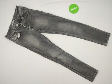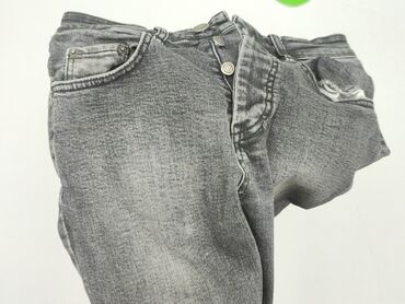 Szare jeansy młodzieżowe/slim, denim z delikatnym spraniem. Cechy: - kolor: ciemnoszary z efektem sprania - krój: wąska nogawka (slim), średni stan - zapięcie: suwak + guzik z przodu - kieszenie:...