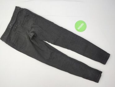 Czarne damskie spodnie typu jeggins/skinny - Fason: dopasowany, zwężane nogawki (skinny) - Stan: używane - Kolor: czarny/grafit - Talia: średnia, elastyczny pas z miejscem na guzik (bez widocznego...