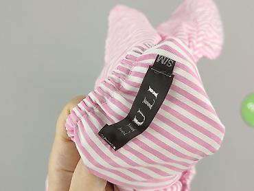 - Wzór: drobne pionowe paski w kolorze różowym i białym